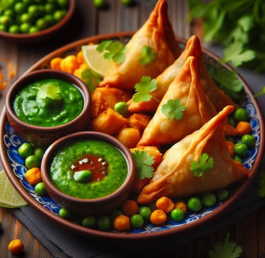 Crispy triangles filled with tasty vegetable mixes.
